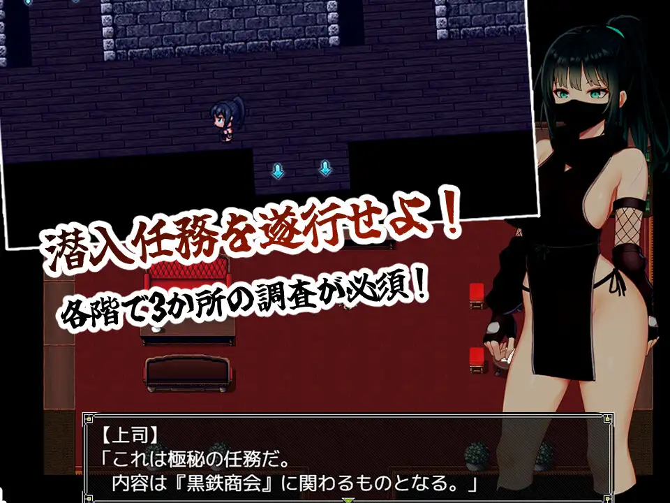一位志在成为上忍的女主角潜入敌区的同人角色扮演游戏。在战斗过程中穿插各种成人场景,败北后还会触发更激烈的凌辱事件……