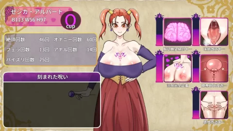 根据护甲和游戏进度,外观会发生变化。也可以查看诅咒的状态和自慰次数等信息。在剧情中,还可以进行自慰!可以根据个人偏好进行调教。