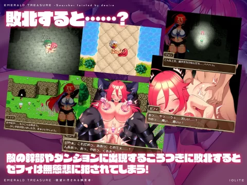 - 场景配音 包含语音的动画场景! 配音演员精彩的配音突显角色的性感魅力! - 动画效果 所有战斗中的色情场景都采用动画表现! 流畅逼真的动画增强了场景的性感氛围。 - 战斗中的色情元素 部分怪物在战斗时会主动攻击! 角色衣物被破坏、被束缚,如果无法逃脱就会被侵犯! - 色情状态系统 全面搭载基础的色情状态多属性系统! 记录首次体验、与最新对象的互动状况以及色情经验数值。 - 淫乱度 泽菲遭遇性刺激时,淫乱度会升高! 该数值影响艾琳在色情场景中的反应表现。 - 无游戏失败 即使战败也不会导致游戏结束! 玩家可以安心继续体验游戏。