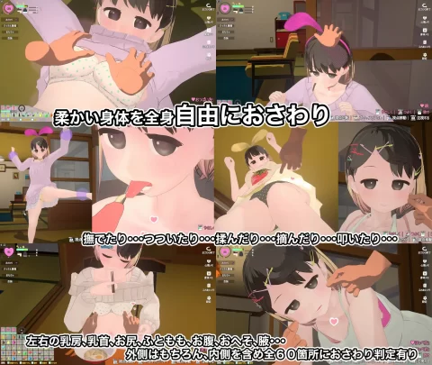 仅限于两人同居的体验,与稍微傲娇的女孩“Chikka”相处生活,包括: - 在室内自由走动 - 享用餐食 - 洗澡 - 使用卫生间 - 进行体育锻炼 - 就寝 - 体重变化(增减) - 触摸互动 - 进行恶作剧 - 亲密互动 根据心情,女孩会有不同的行动表现,您也可以自由移动并与她互动。您的行为会影响她的好感度和态度。无论是调皮捉弄她,还是以友善的方式增进感情,皆由您掌控!