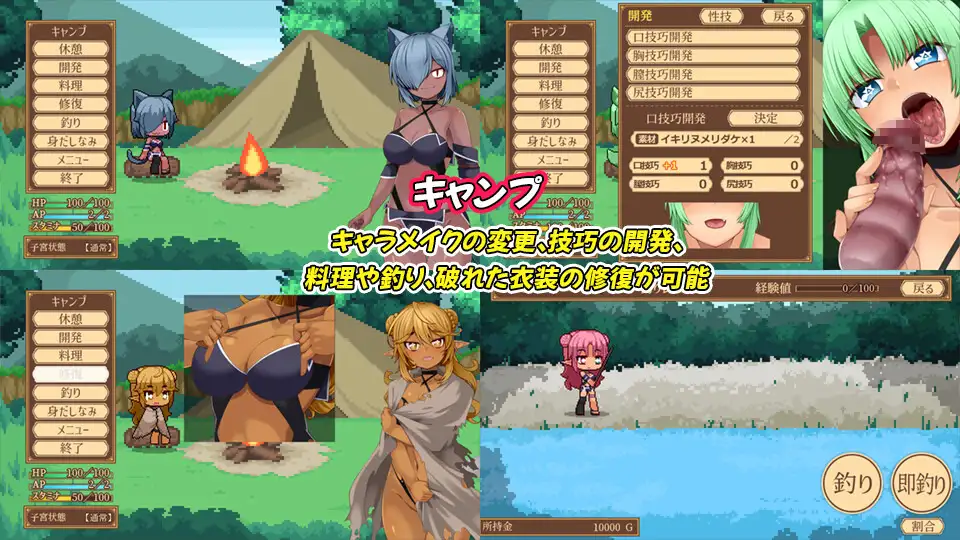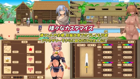 还可以通过在活动或城镇的商店购买配饰,进行更深入的个性化调整。眼镜、项圈、碎发、乳头穿环、蝴蝶结、淫纹……部分配饰还能改变颜色。不断定制角色的外貌,将你的理想一一实现!